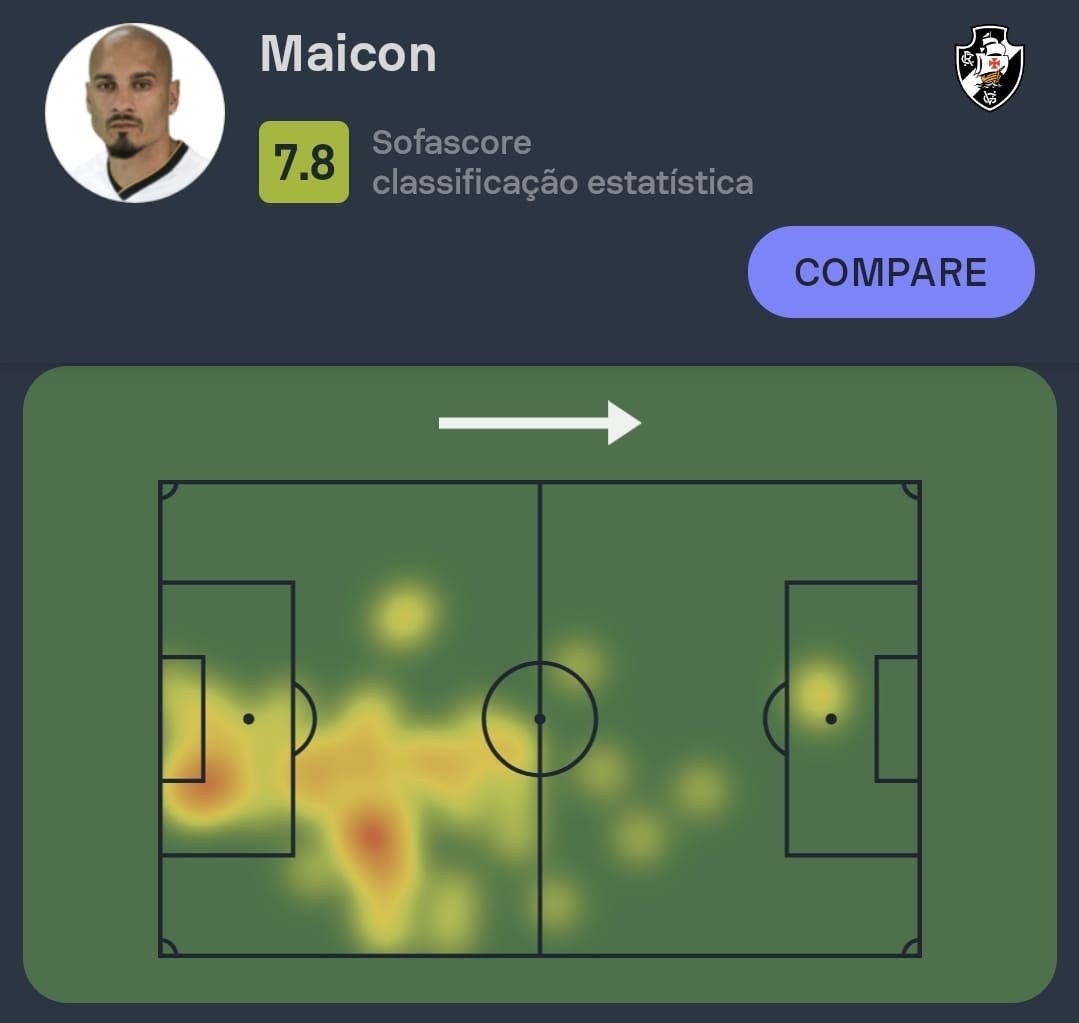Maicon teve a 2ª maior Nota Sofascore de Vasco 1-0 Botafogo.