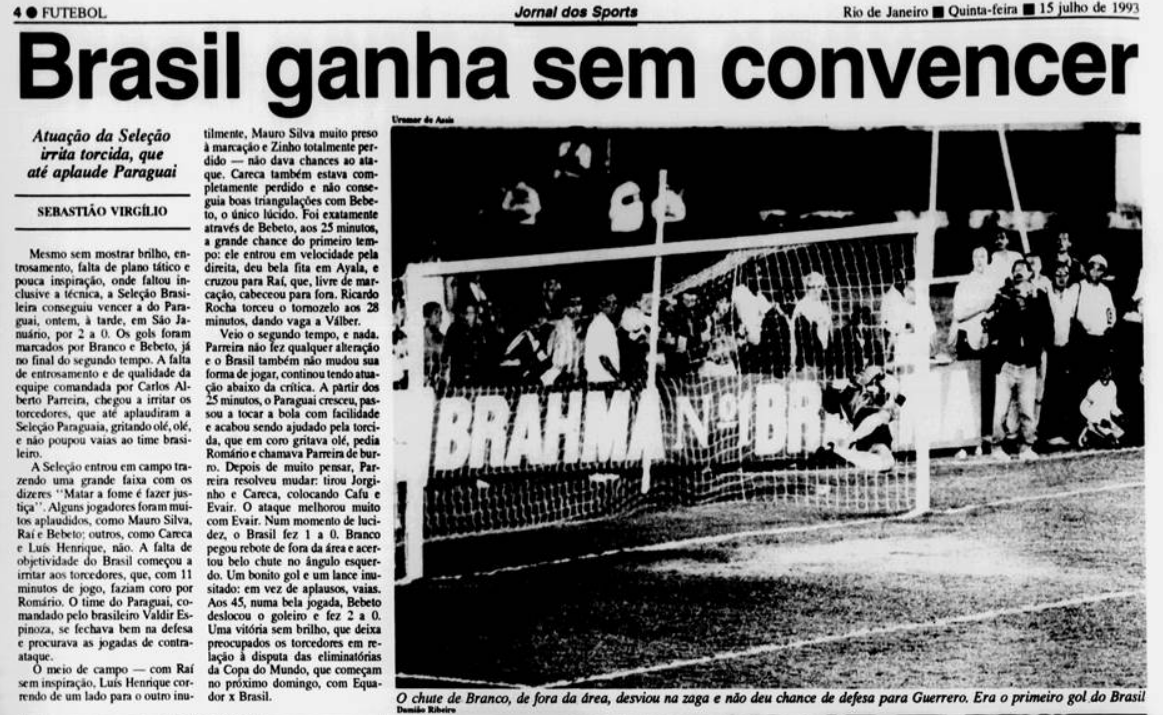 14/07/1993: Brasil vencia o Paraguai em São Januário