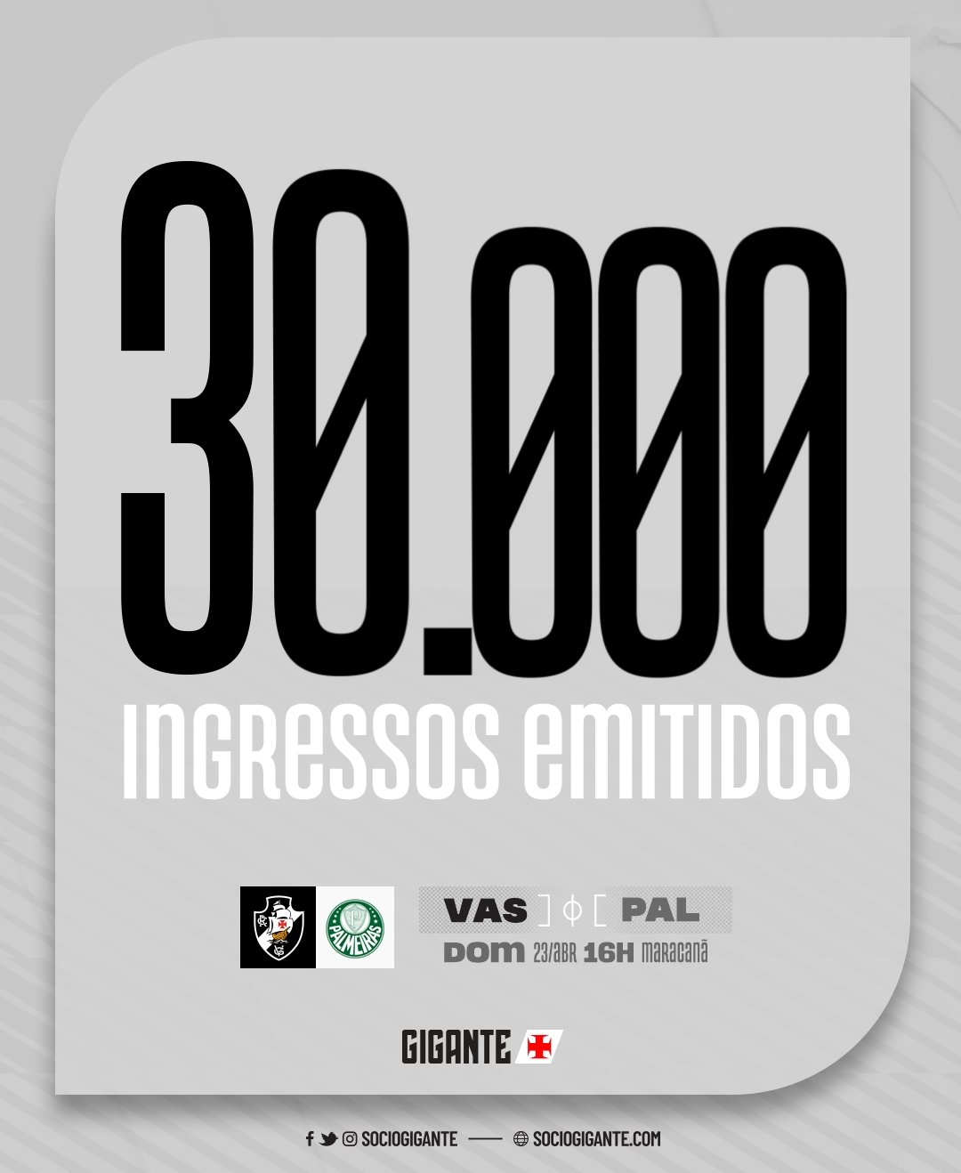 30.000 ingressos já foram emitidos para Vasco x Palmeiras
