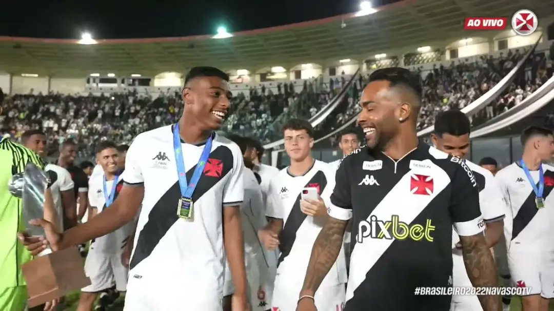Alex Teixeira dá volta olímpica em São Januário com atletas do Sub-17