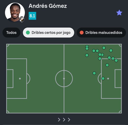 #Cariocão 🇧🇷 Andrés Gómez foi o líder de dribles certos de Vasco 1-1 Volta Redonda!