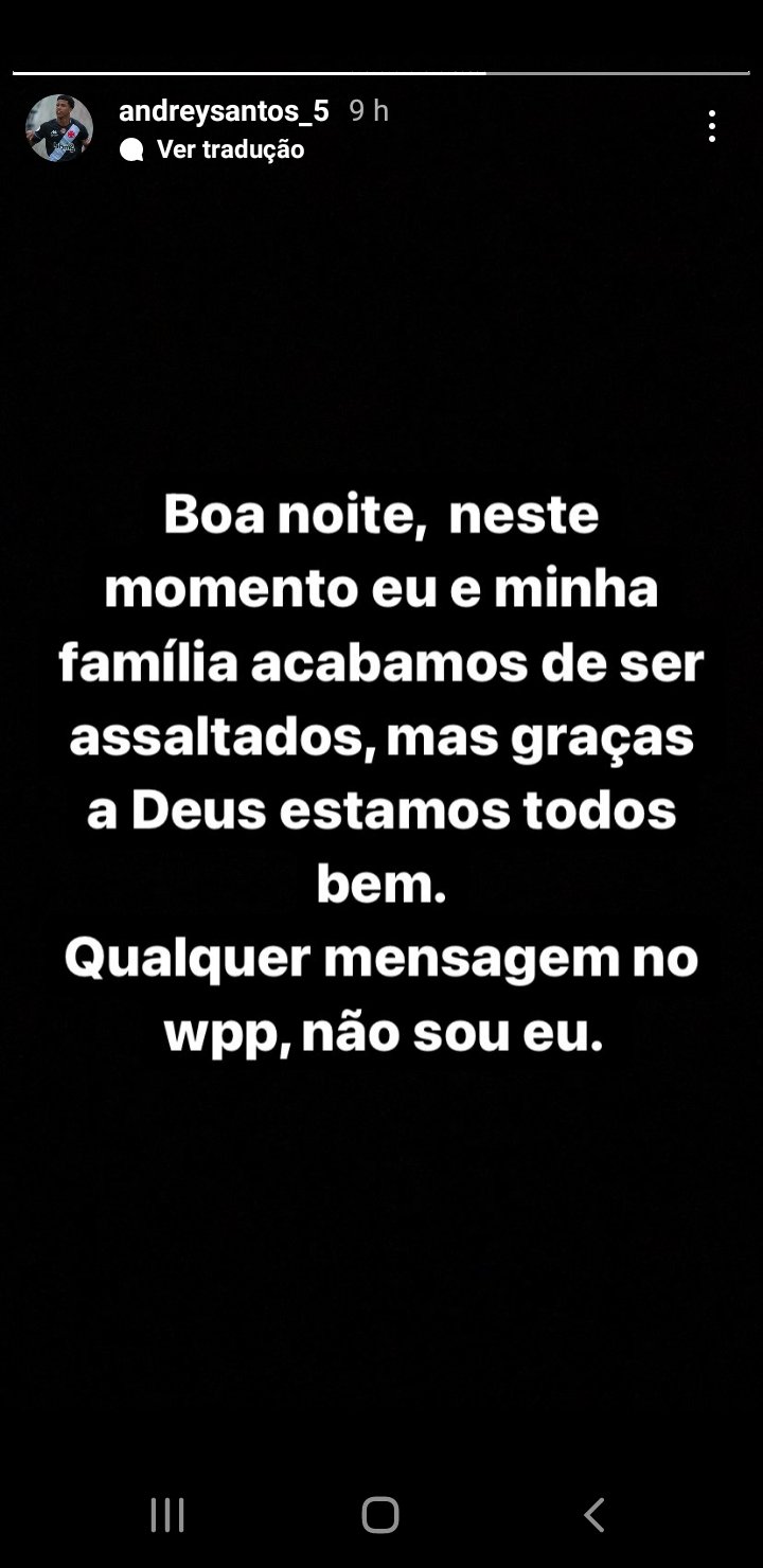 O volante Andrey Santos foi assaltado e revelou estar tudo bem, através de sua conta oficial do Instagram!