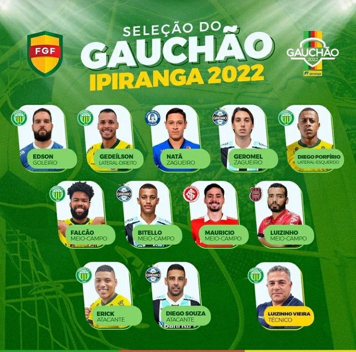 O atacante Erick, encaminhado com o Vasco, foi eleito para a Seleção do Campeonato Gaúcho. Ele foi o artilheiro da competição, com seis gols pelo Ypiranga, que foi vice-campeão.