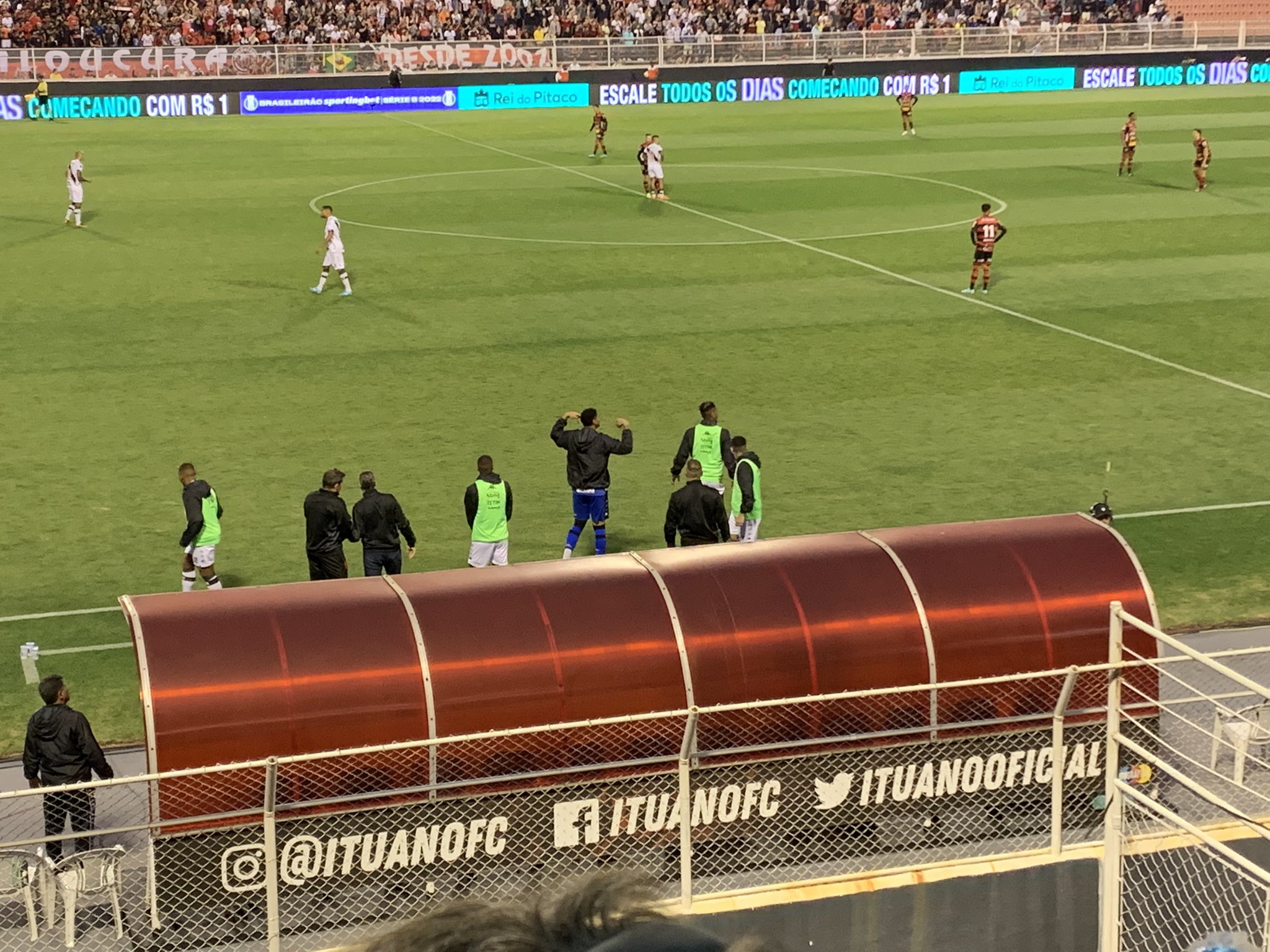 Enquanto alguns reservas correram pra comemorar com os jogadores atrás do gol, Halls e o preparador Daniel Félix gesticulavam para que o time mantenha o foco mesmo com o gol relâmpago.