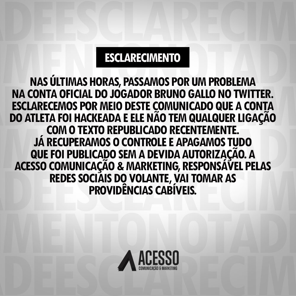 Assessoria de Bruno Gallo divulga nota esclarecendo a polêmica no Twitter