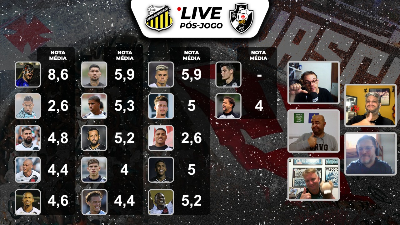 Essas foram as notas que nossos integrantes deram aos jogadores do Vasco na derrota para o Novo Horizontino. Concordam? Deixem nos comentários!
