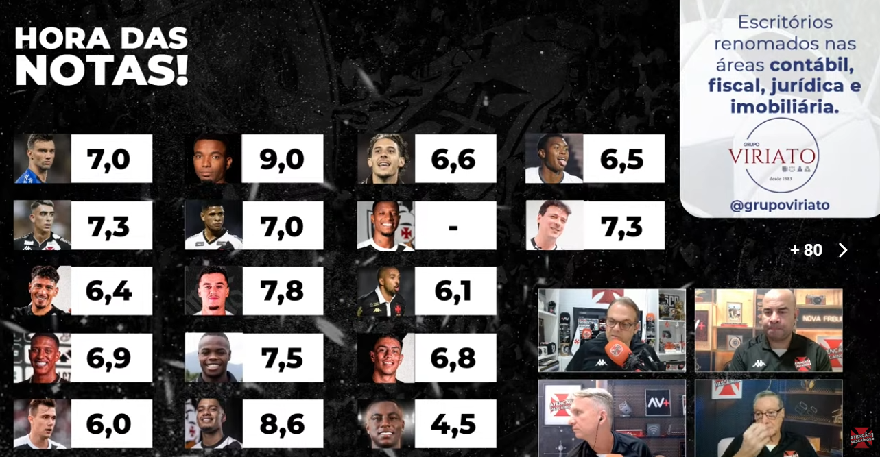 Canal AV avaliou a atuação do Vasco contra o Botafogo, na vitória por 2 a 0, neste domingo (08), em São Januário. Segundo os jornalistas, Thiago Mendes e Brenner foram os melhores em campo.