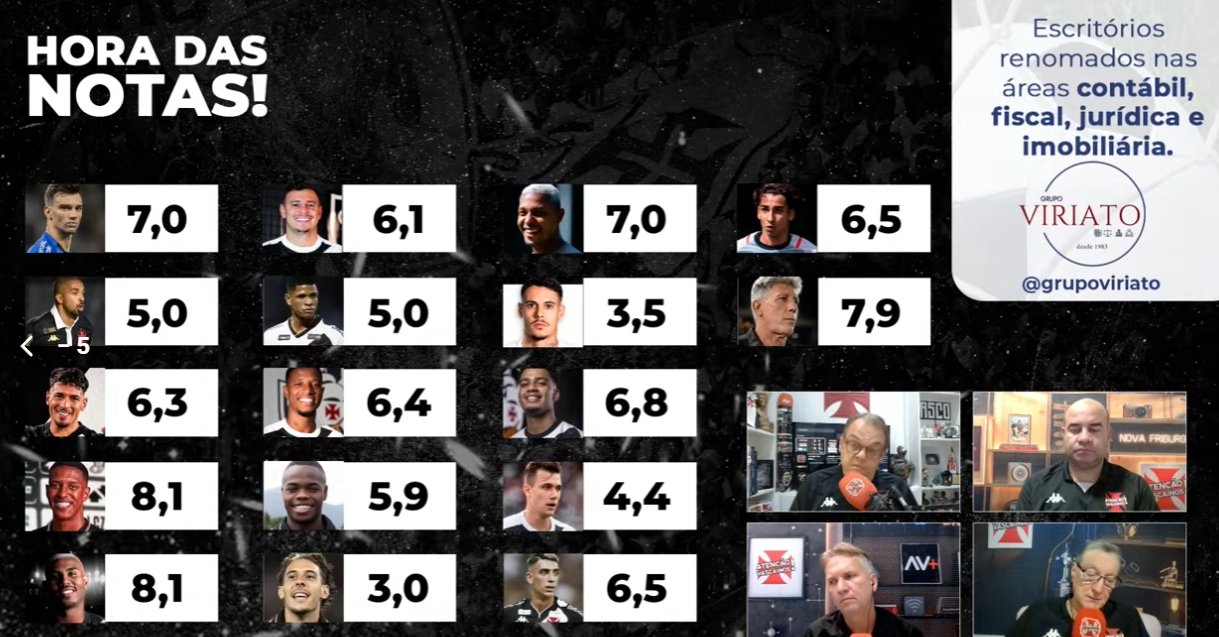 AV: Notas dos jogadores do Vasco contra o Cruzeiro