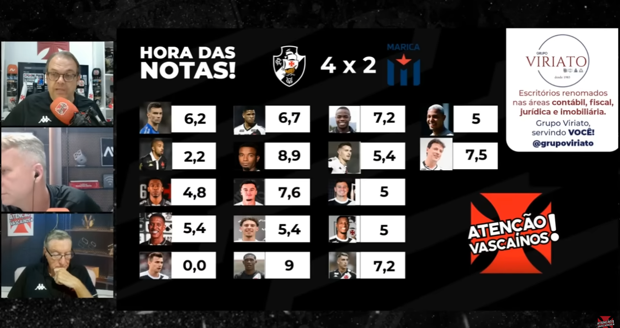 Canal Atenção Vascaínos avaliou a atuação do Vasco contra o Maricá, na vitória por 4 a 2, na última quinta (16), em São Januário. Segundo os jornalistas, Rayan e Thiago Mendes foram os melhores em campo.