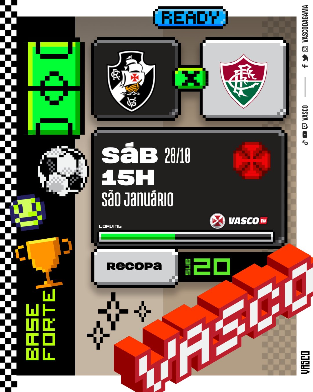➡️ O Sub-20 decide a Recopa Carioca Sub-20 contra o Fluminense, às 15h, em São Januário, com transmissão da VascoTV.