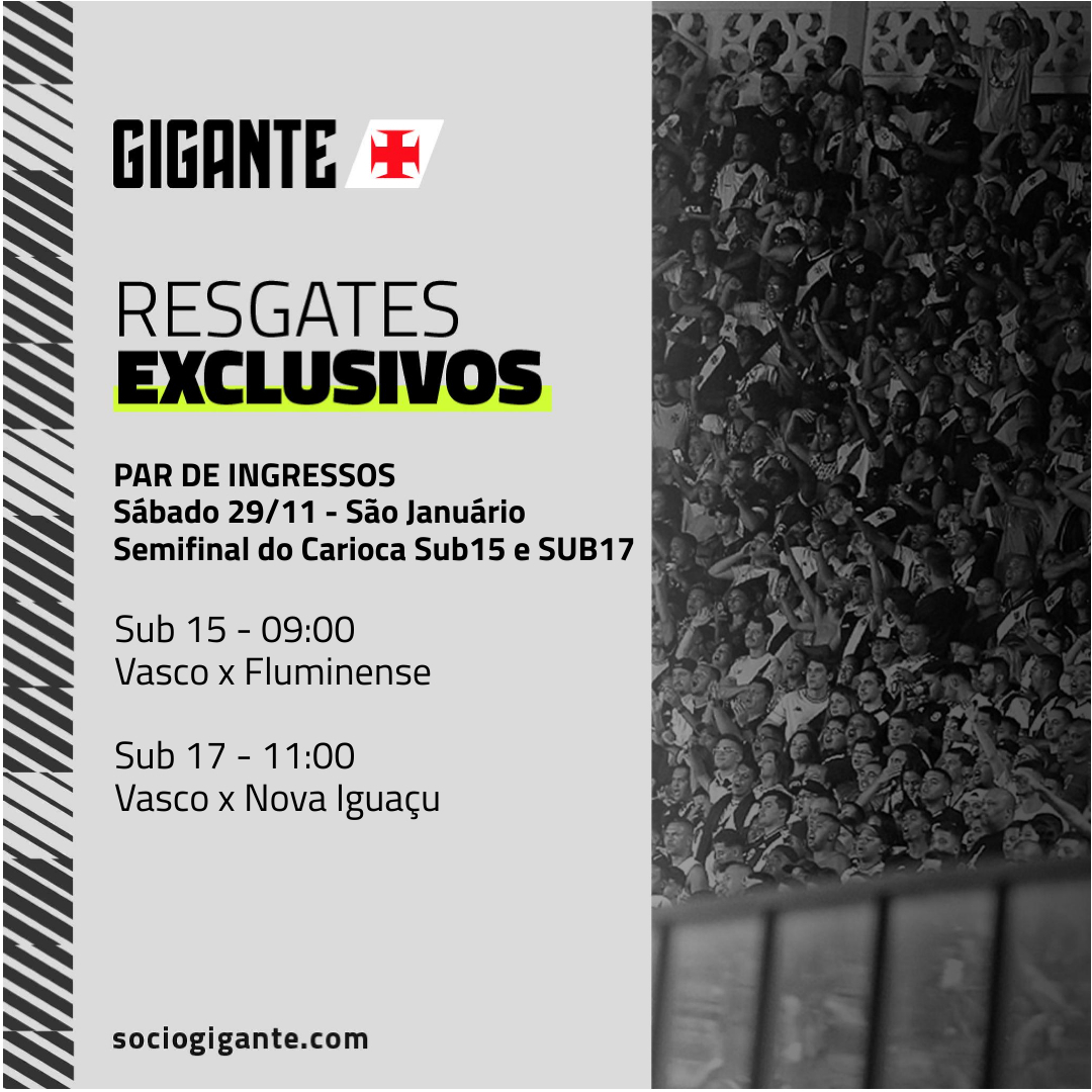 Neste sábado 29/10, tem semifinal do Carioca das categorias Sub15 e Sub17 em São Januário e quem é Sócio Gigante pode resgatar um par de ingressos.