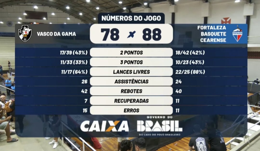 Basquete: Os números de Vasco 78 x 88 Fortaleza