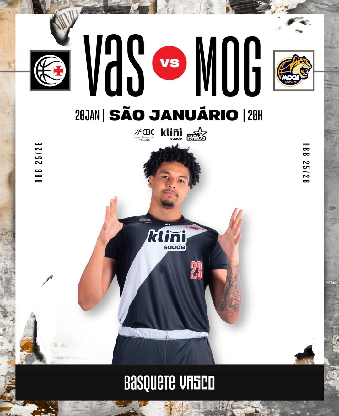 O Vasco da Gama entra em quadra HOJE, às 20h, em São Januário, para o confronto contra o Mogi Basquete, pelo NBB CAIXA 25/26.