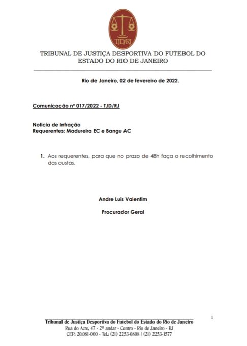 Madureira e Bangu acionaram a Procuradoria do TJD-RJ através de uma Notícia de Infração pela escalação irregular do volante Ryan Guilherme. O atleta foi expulso na última rodada da Taça Guanabara de 2021. +