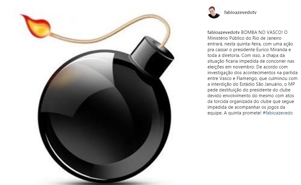 Segundo informações do jornalista Fábio Azevedo da Fox Sports, o mandato do presidente Eurico Miranda pode ser cassado, o que impediria dele tentar uma reeleição, em novembro. Confira: