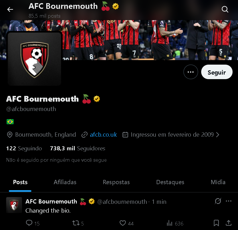 Fonte: X oficial do Bournemouth