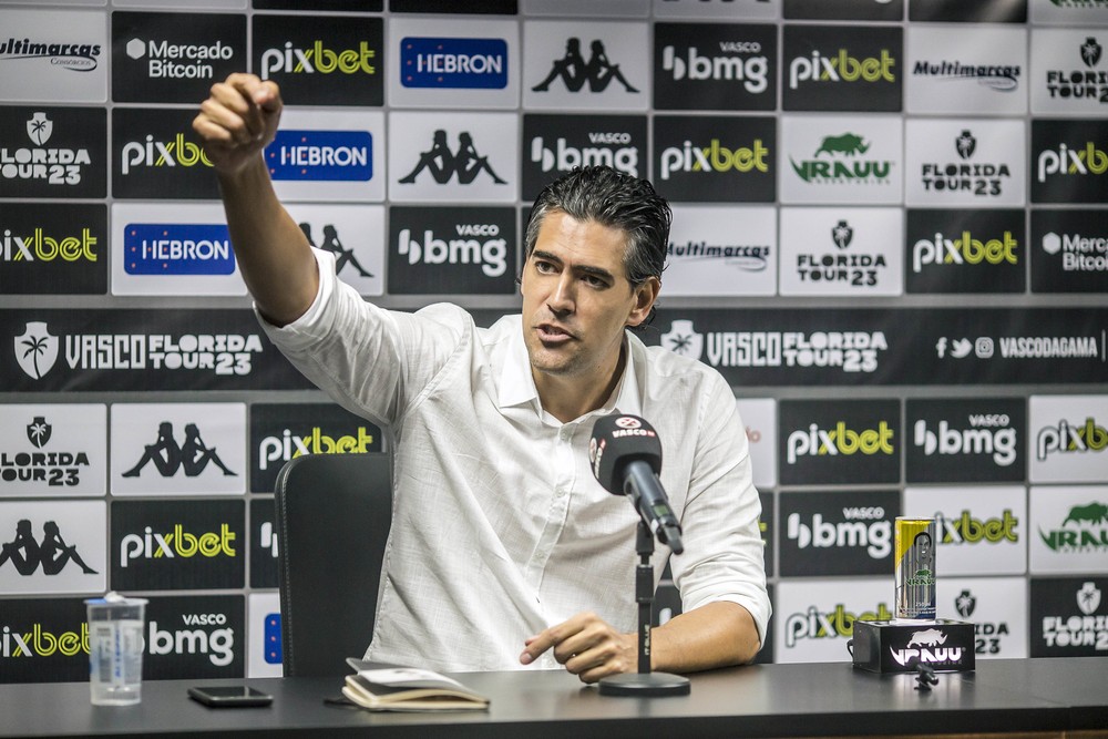 "Não é a orientação direta do grupo (777), para que se contrate só jovens. Tanto que a gente só contrata 4 jogadores entre 21 e 24 anos. Mas vocês mesmo não podem questionar nossa necessidade de colocar pra jogar, e dar minutos para esses jogadores que estão na base do Vasco. A gente precisa desses jogadores fortalecidos dentro do nosso elenco. Então, não entendo que seja algo perigoso."