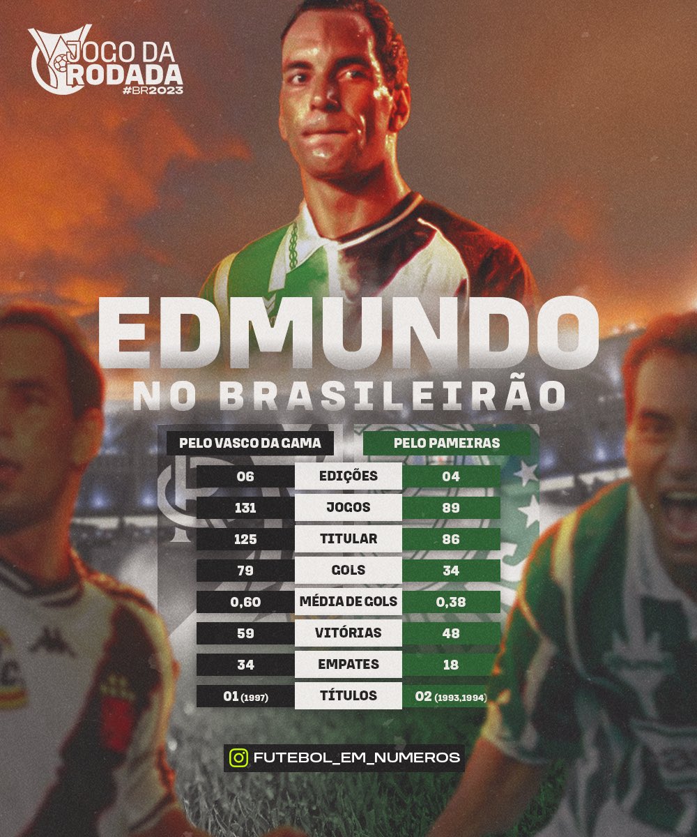 Brasileirão destaca números de Edmundo por Vasco e Palmeiras