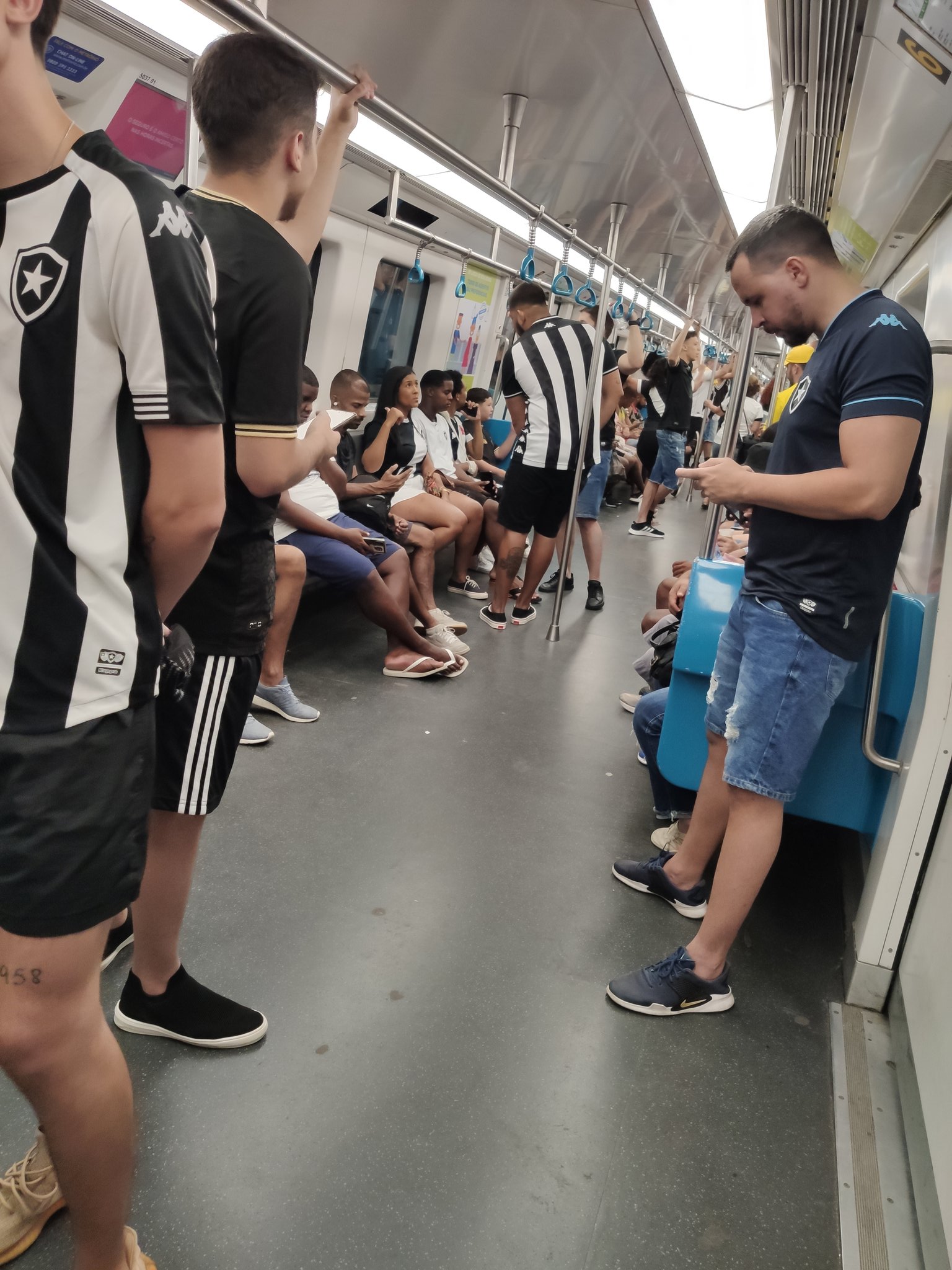 A caminho do Maracanã. Metrô cheio de vascaínos e alvinegros misturados. Clima super amistoso até agora. Melhor clássico do Rio para ir em termos de segurança, disparado.