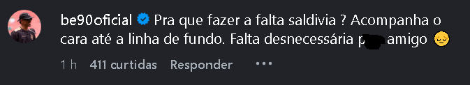 - Para que fazer a falta, Saldivia? Acompanha o cara até a linha de fundo. Falta desnecessária! P$%¨¨, amigo 😔