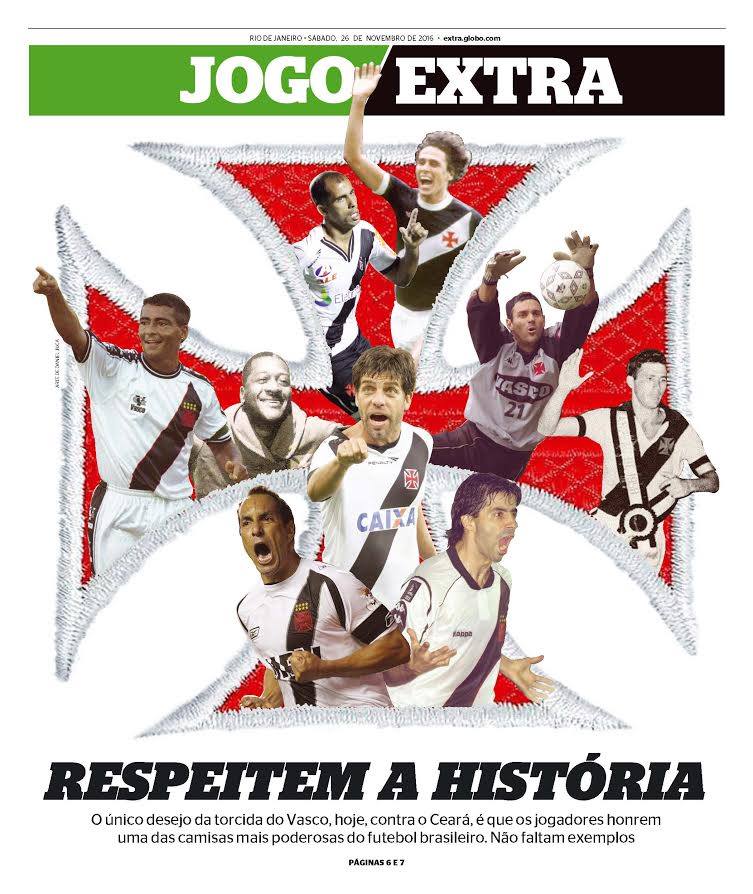Capa de jornal destaca o Vasco em dia decisivo: "Respeitem a grandeza"