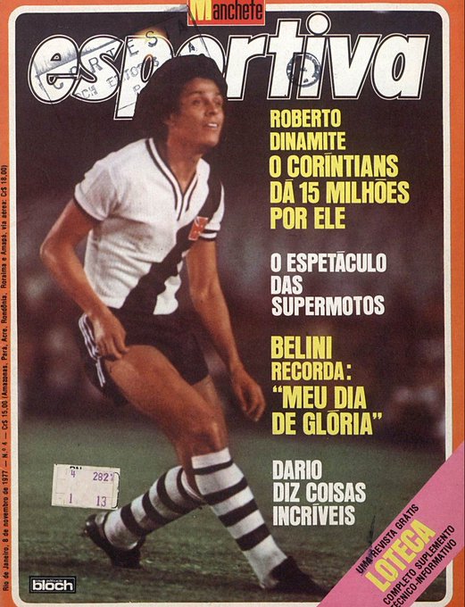 Roberto Dinamite na capa da revista Manchete Esportiva (edição N°4 – 8 de novembro de 1977).