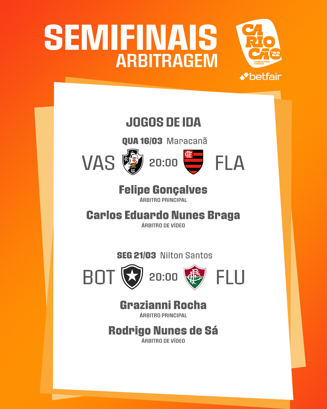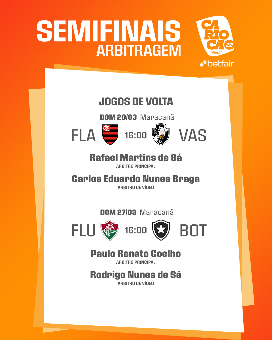 ⚠ Arbitragem definida para as semifinais do #CariocãoBetfair22!