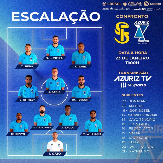 Cayo Tenório, emprestado pelo Vasco, foi reserva na estreia do Azuriz, contra o São Joseense, em jogo válido pelo Campeonato Paranaense.