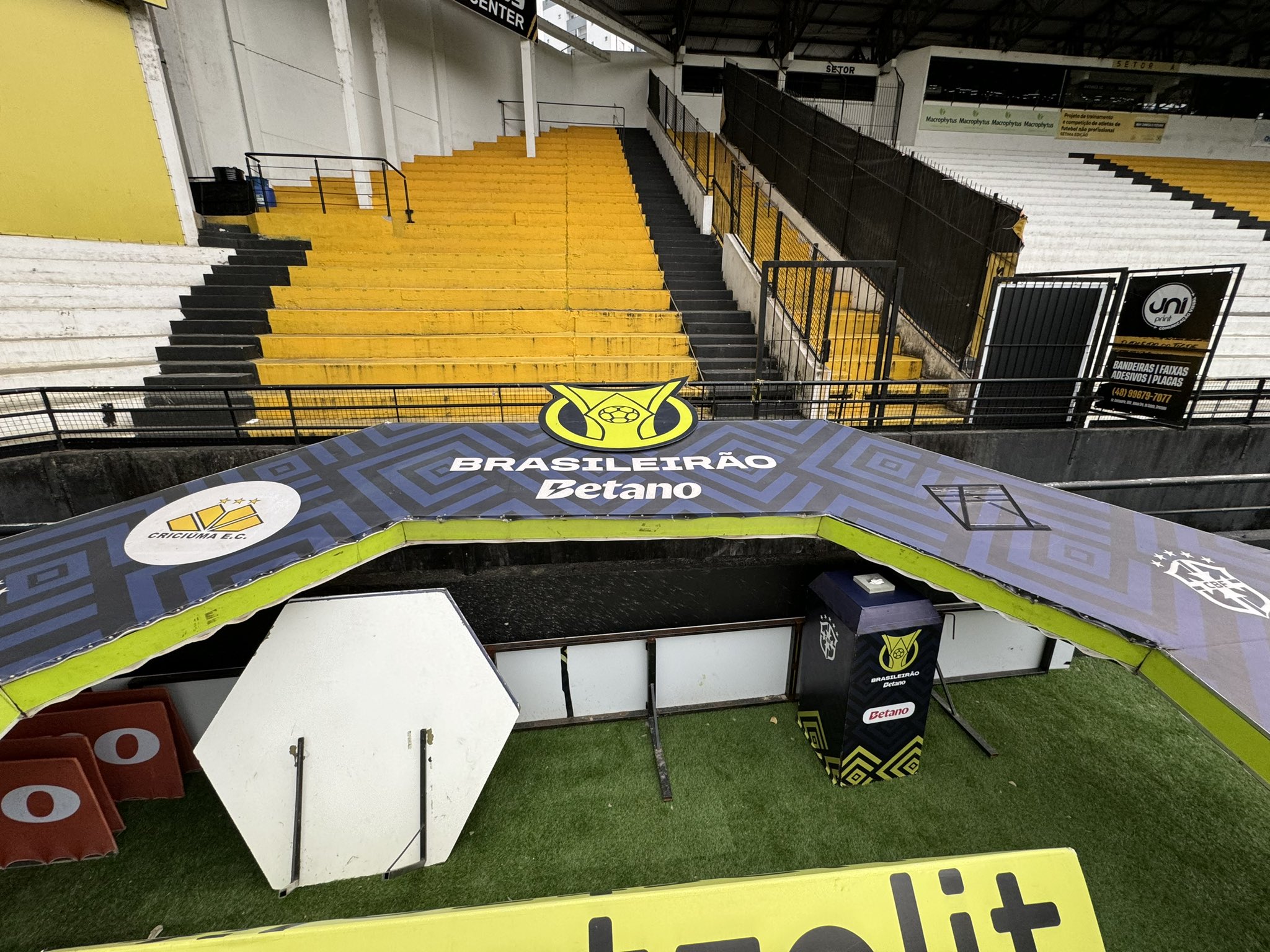 Placa da partida entre Criciúma e Vasco ainda não consta o escudo cruzmaltino. No jogo contra o Fluminense, no Engenhão, o escudo do Vasco foi colocado na placa poucas horas antes da bola rolar.