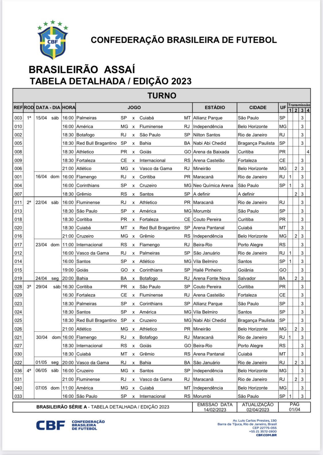 CBF detalha as 10 primeiras rodadas da Série A com datas, locais e horários