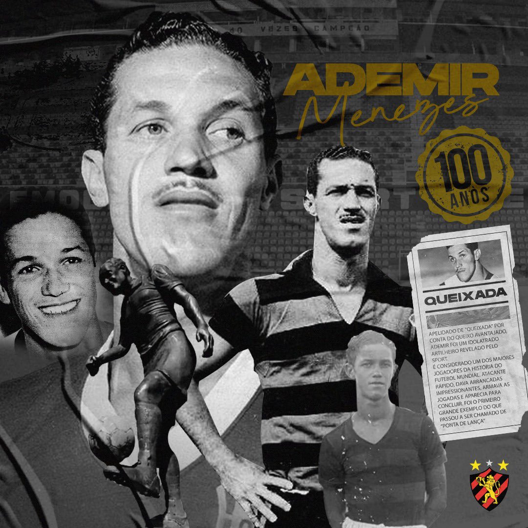 Hoje é o centenário de Ademir Menezes. Cria do Leão, artilheiro da Copa de 50, finalizador nato. Um marco eterno na nossa história e na do futebol brasileiro. Queixada eterno! #Ademir100