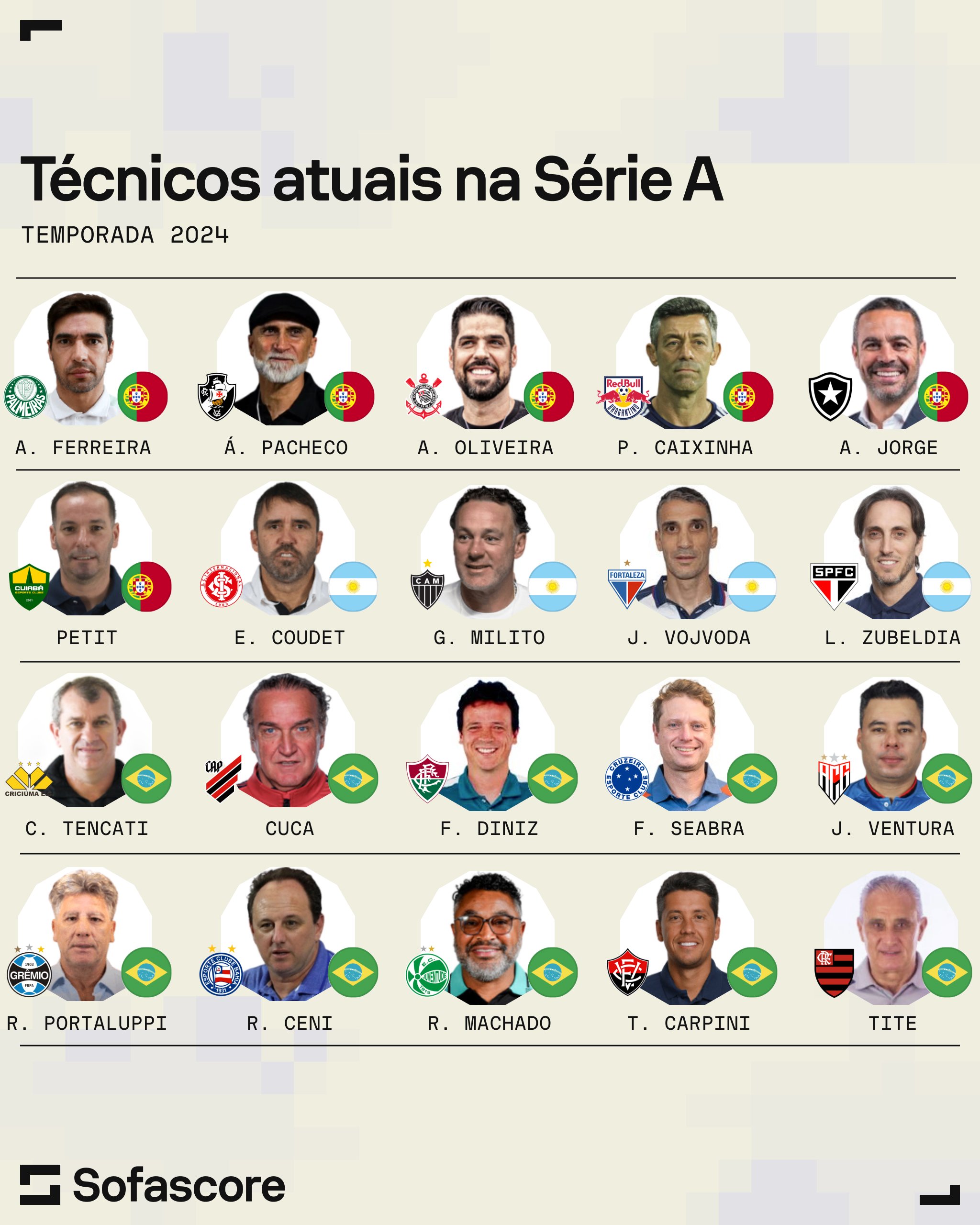 Com a contratação de Álvaro Pacheco pelo Vasco, agora temos 10 técnicos estrangeiros e 10 técnicos brasileiros na Série A! 📋