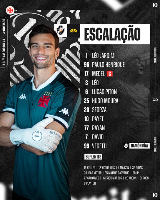 Eis a escalação do Vasco da Gama para a partida contra o Criciúma! 💢