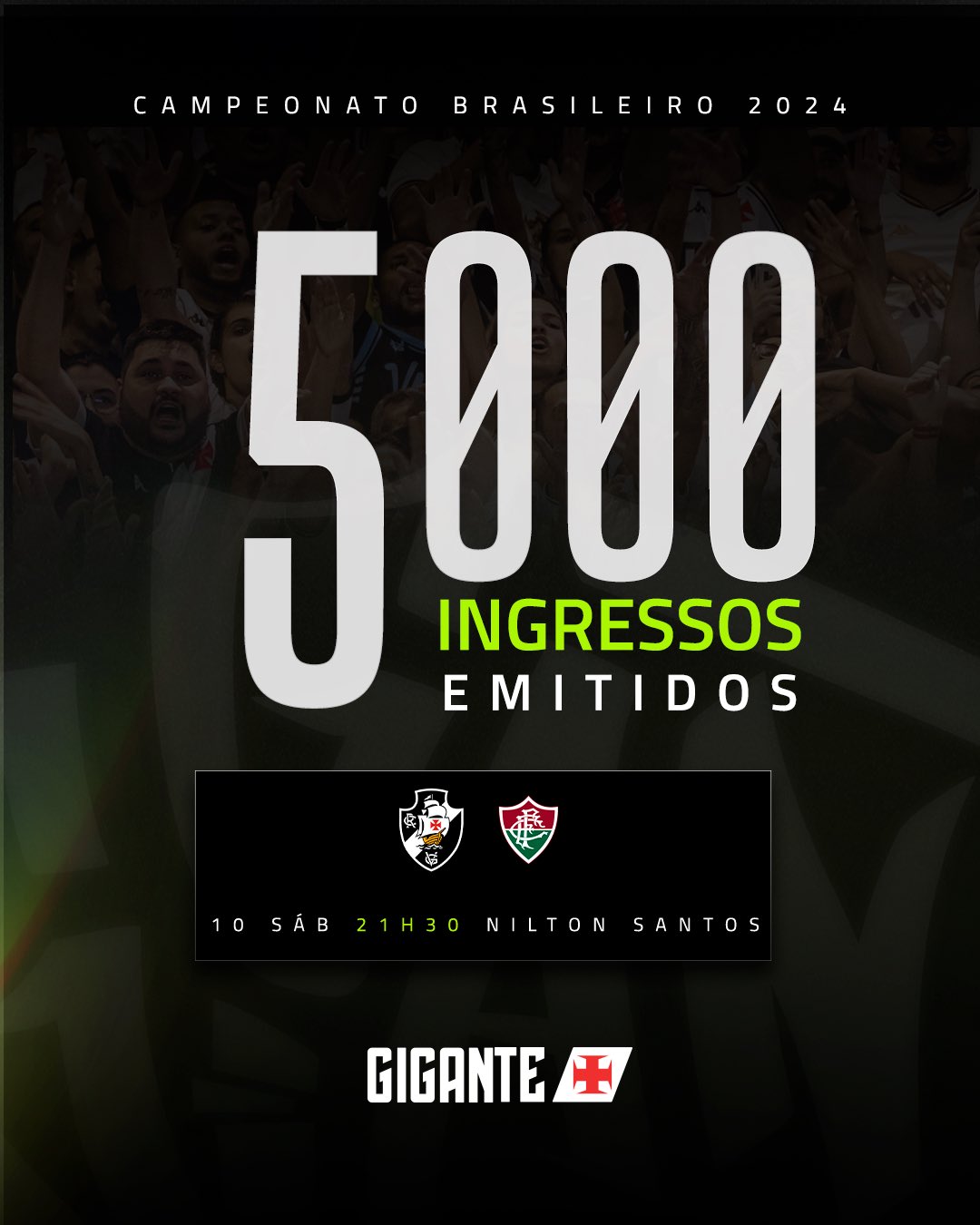 Como está o andamento da venda dos ingressos para Vasco x Fluminense