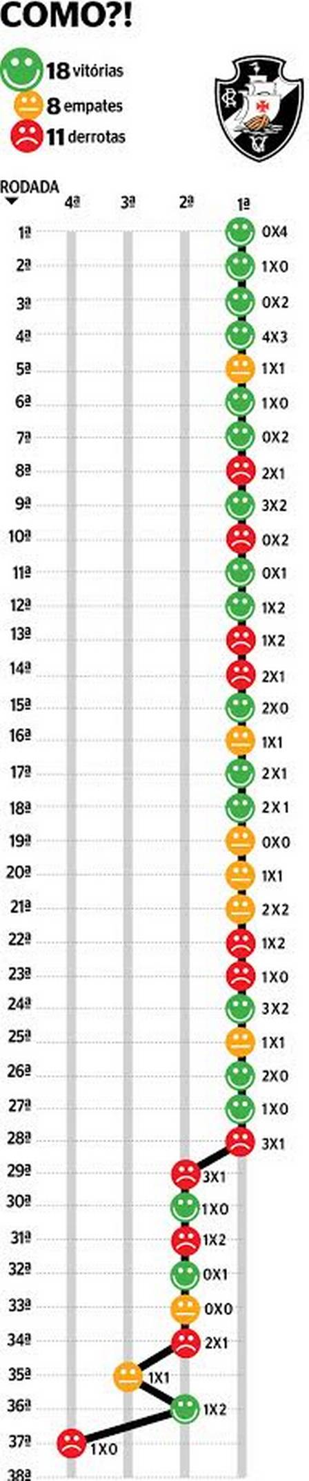 O Vasco, até a 18ª rodada, conseguiu a famosa gordura que tantos os jogadores de futebol celebram. Foram 12 vitórias que garantiam a paz em São Januário, mesmo com jogadores importantes já não rendendo o mesmo de antes.