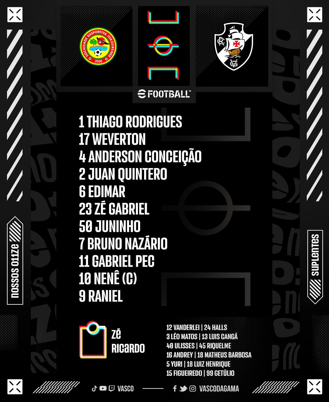 Confira a escalação oficial do Vasco para a partida contra o Juazeirense