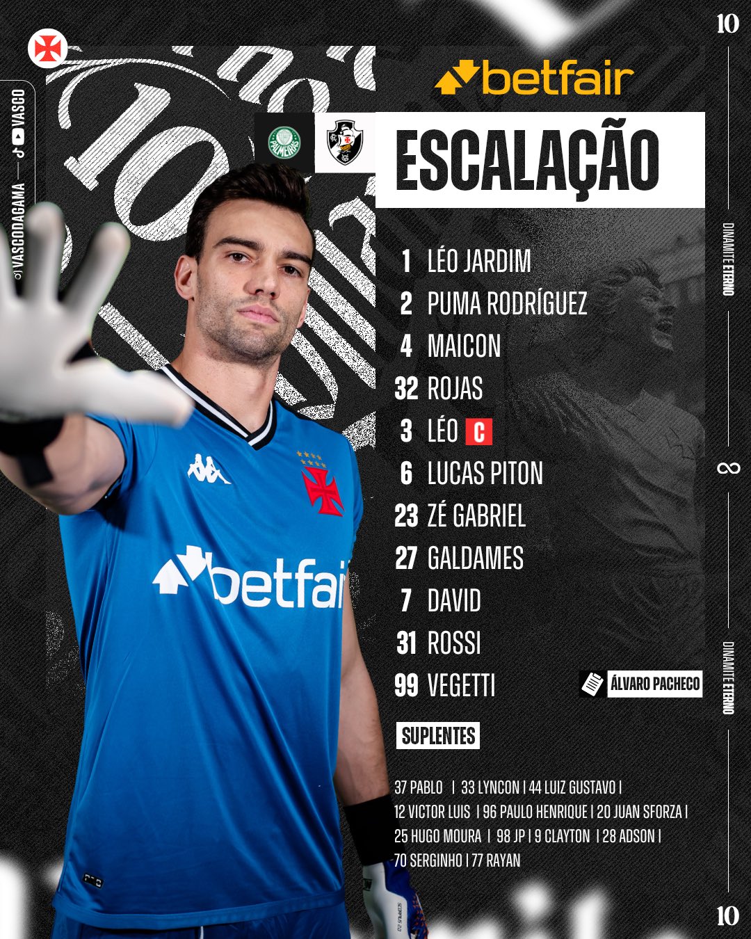 Confira a escalação oficial do Vasco para jogo de hoje (13)