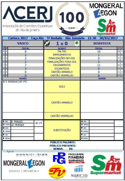 Scout do 1º tempo de Vasco x Boavista pela 5ª Rodada da Taça Rio 2017