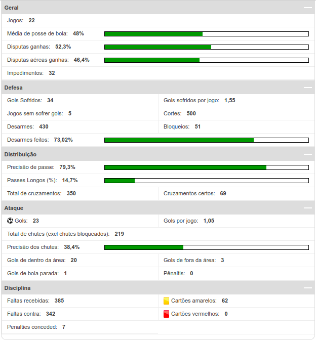 Confira as estatísticas do Vasco até a rodada #22 do Brasileirão