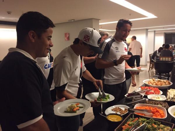 Luis Renan, Renato Lisboa e Rodrigo Clemente não esconderam a felicidade ao receberem a notícia. No restaurante do Hotel Mercure, os sócios-torcedores conversaram com a nutricionista Melina Frota e obtiveram informações sobre a importância de um cardápio balanceado para os atletas. O volante Jean acompanhou tudo de perto e chegou, inclusive, a dar dicas de alimentação para os Gigantes.