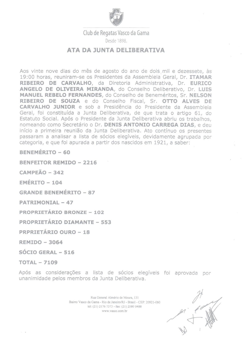 A Junta Deliberativa do Vasco determinou, na última terça-feira, a lista de sócios elegíveis (com cinco anos de efetividade social) para o próximo pleito. A divulgação dos 7.109 nomes está prevista para esta quinta-feira, na secretaria do clube, em São Januário.