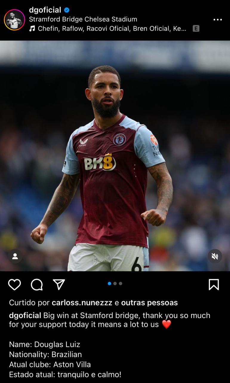 Postagem de Douglas Luiz ironizando a convocação da Seleção Brasileira.