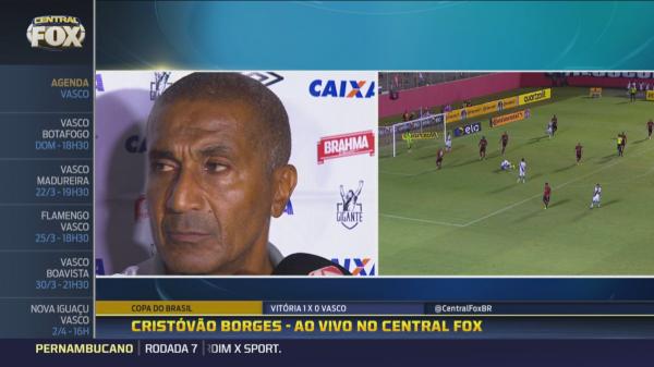 "Trabalho segue". Triste com a eliminação do @vascodagama na #CopaDoBrasilFOXSports, Cristóvão acredita em evolução da equipe!