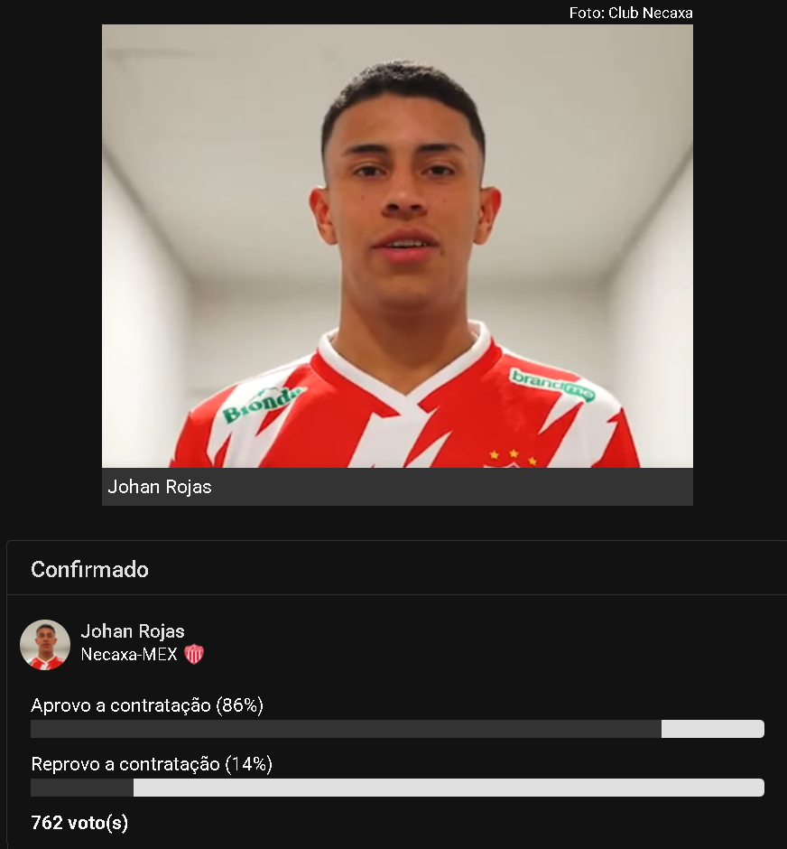 Os torcedores que acompanham o site SuperVasco aprovaram a chegada de Johan Rojas, anunciado pelo Vasco na madrugada desta quinta (08).