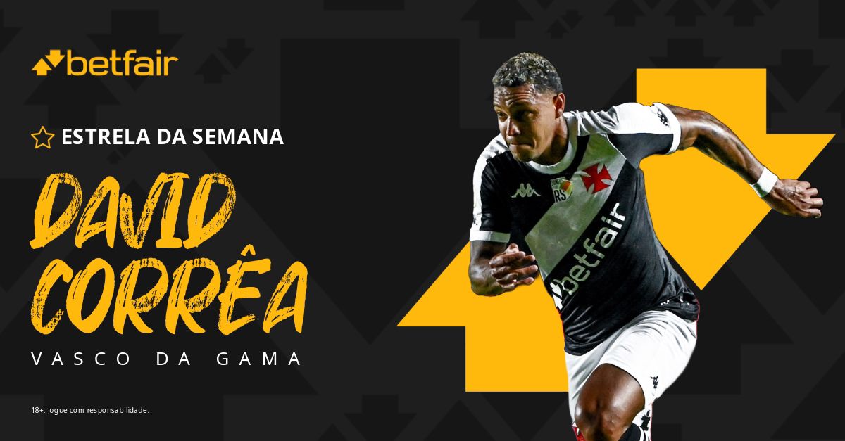💢 Estrela da Semana! Impactante na vitória do Vasco sobre o São Paulo por 4 a 1, David foi escolhido como o jogador da semana pela Betfair. O atacante marcou 1 gol, deu 1 assistência, teve 3 passes decisivos e 2 dribles precisos, comandando o triunfo vascaíno.
