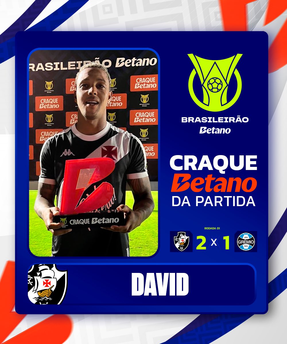 David foi escolhido o #CraqueBetano de Vasco 2 x 1 Grêmio. 📀💿