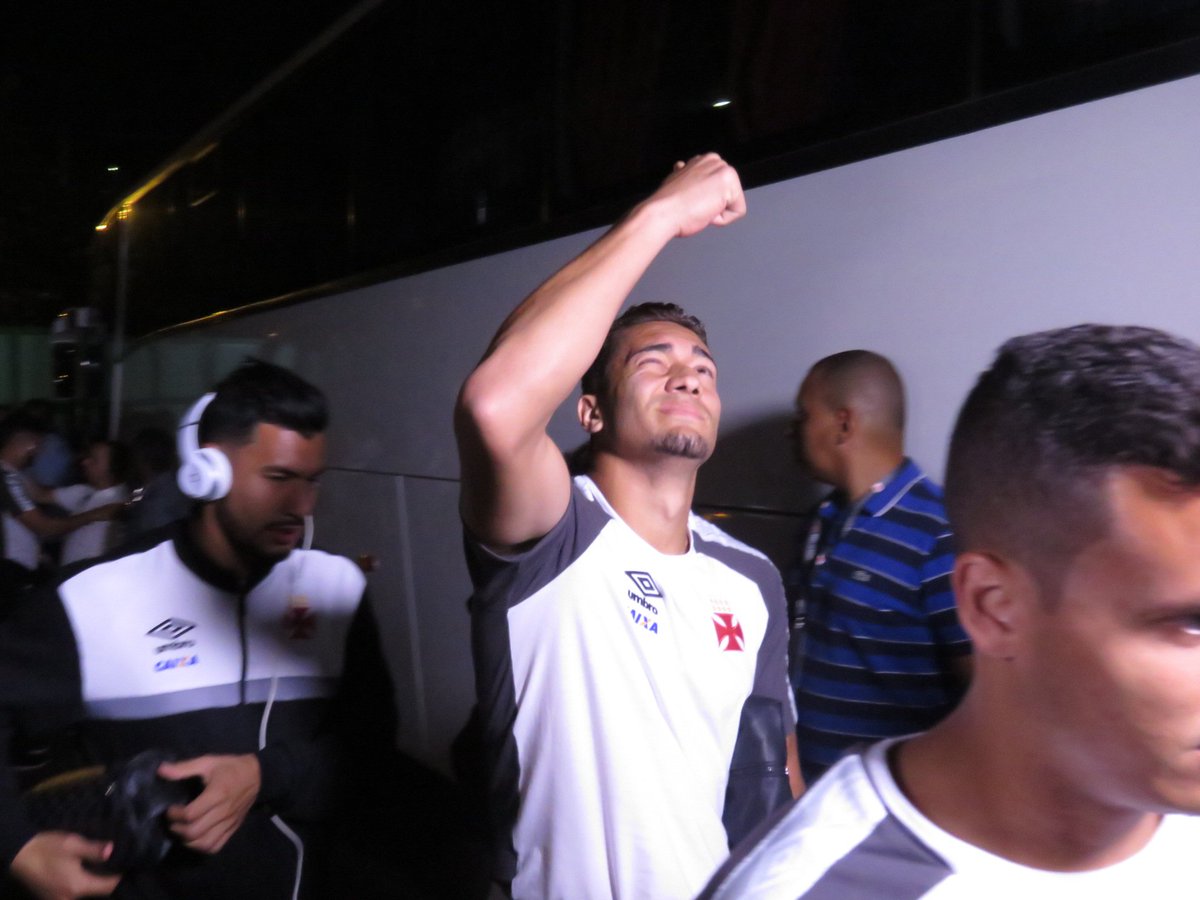 Boa noite! Vasco chegou aqui no Raulino de Oliveira. Olha o Jean acenando para a torcida. #gevas