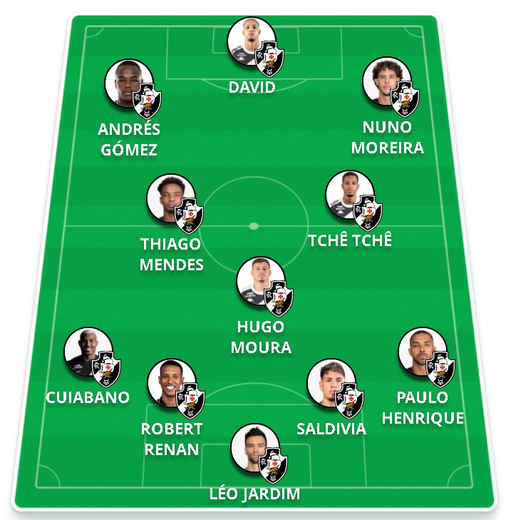 Provável escalação: Léo Jardim; Paulo Henrique, Saldivia, Robert Renan, Cuiabano (Lucas Piton); Hugo Moura, Thiago Mendes, Tchê Tchê; Nuno Moreira, Andrés Gómez; David.