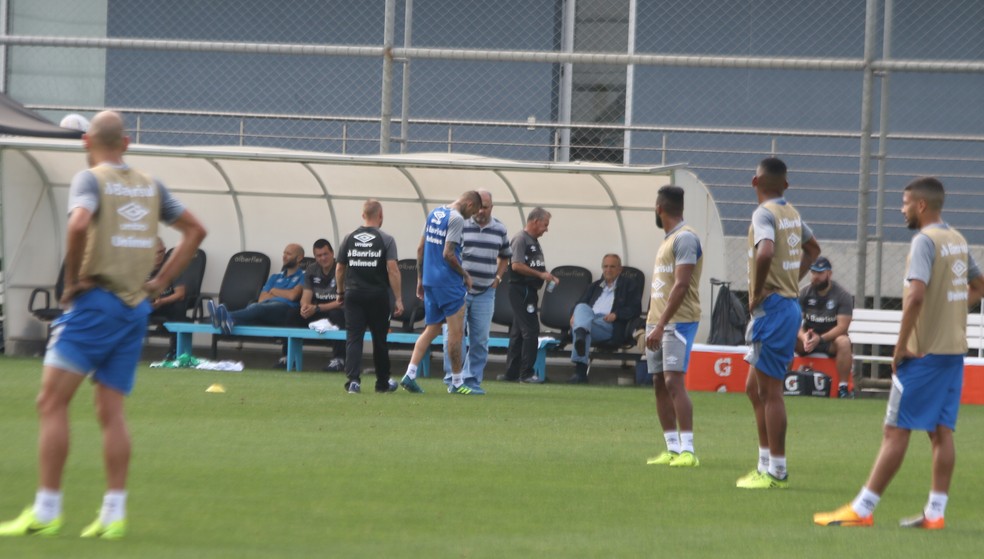 A boa notícia da manhã foi a participação de Pedro Geromel em sua primeira atividade com bola. O zagueiro trabalhou normalmente no treinamento em campo reduzido, de três equipes, mas era um curinga, para evitar intensidade maior. No trabalho, um time precisava marcar o gol, enquanto outro necessitava passar em área delimitada no meio-campo.