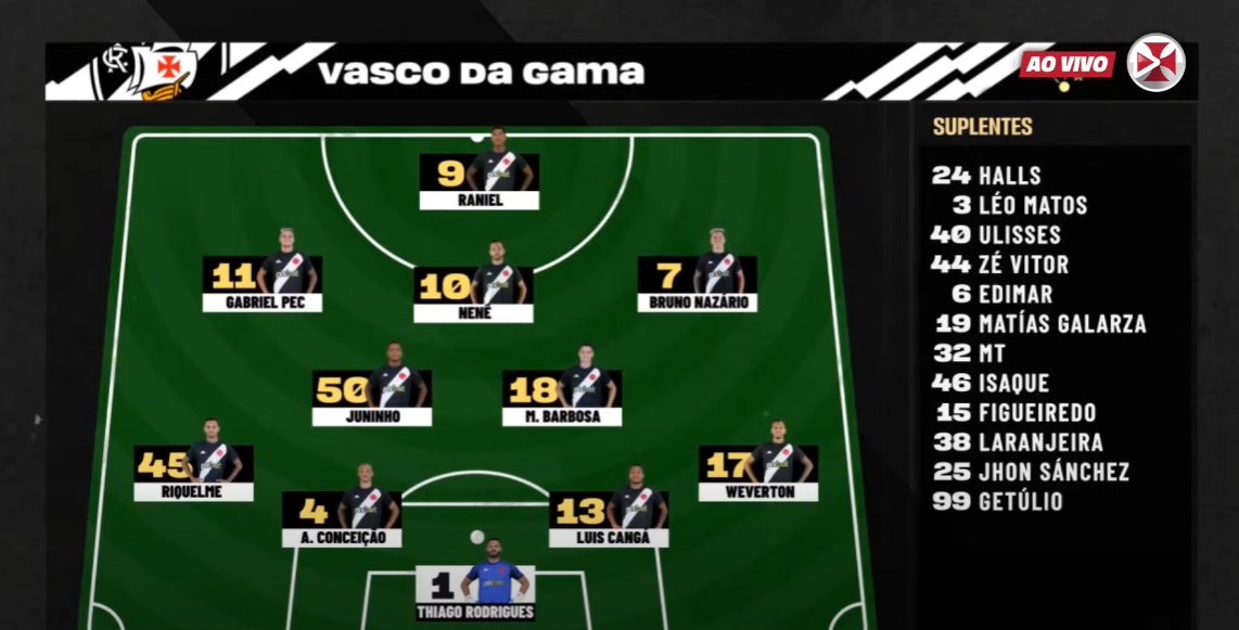 Vasco escalado! Riquelme, Cangá e Weverton são as novidades.